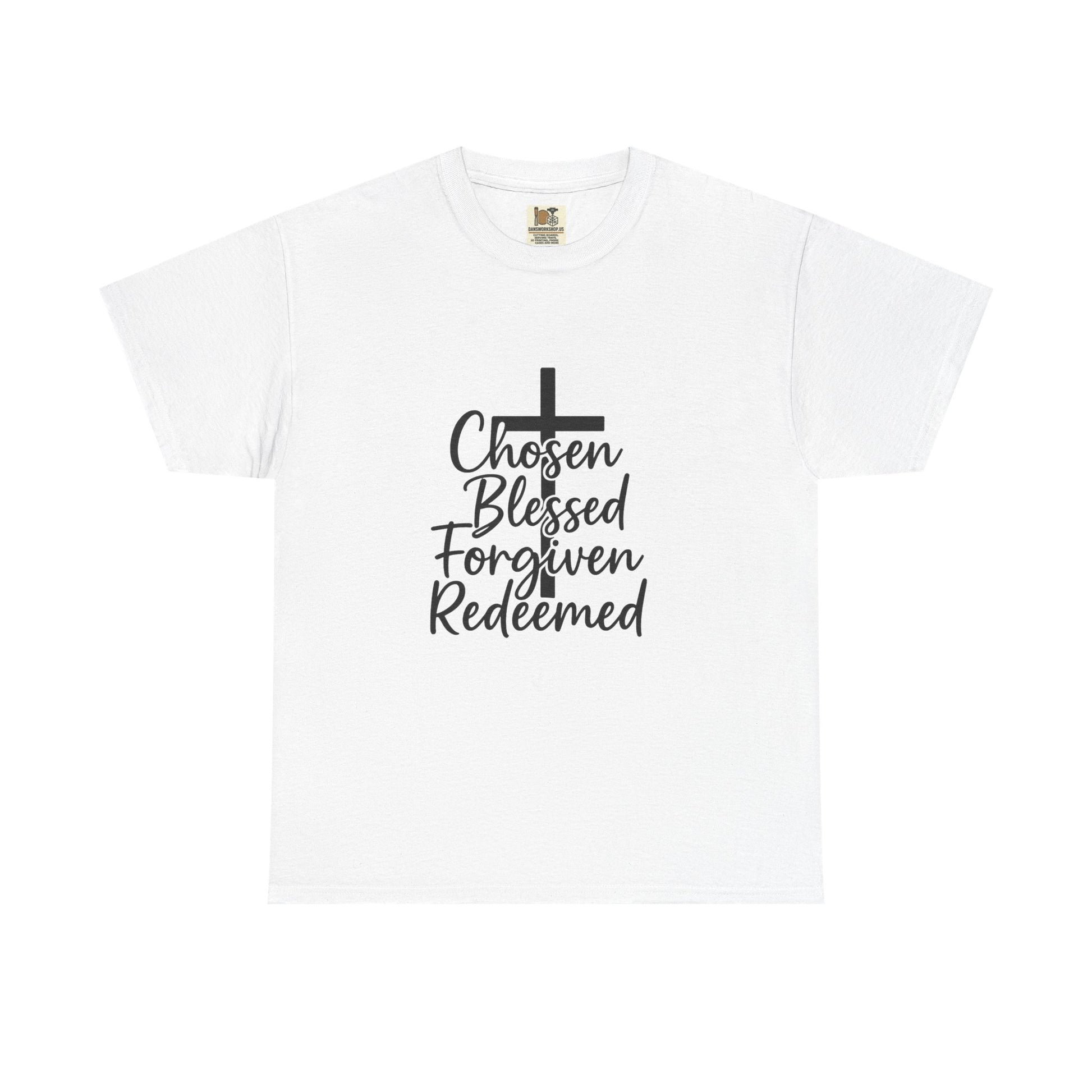 Faith-Inspired Unisex Heavy Cotton Tee - Chosen Blessed Forgiven Redeemed, Christian T-Shirt, Gift for Believers, Inspirational [...]