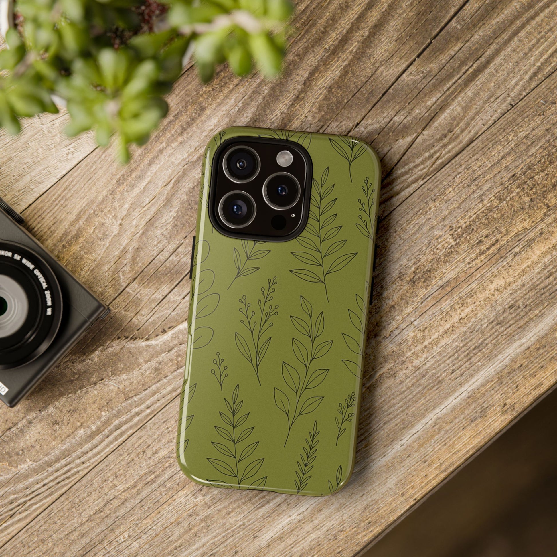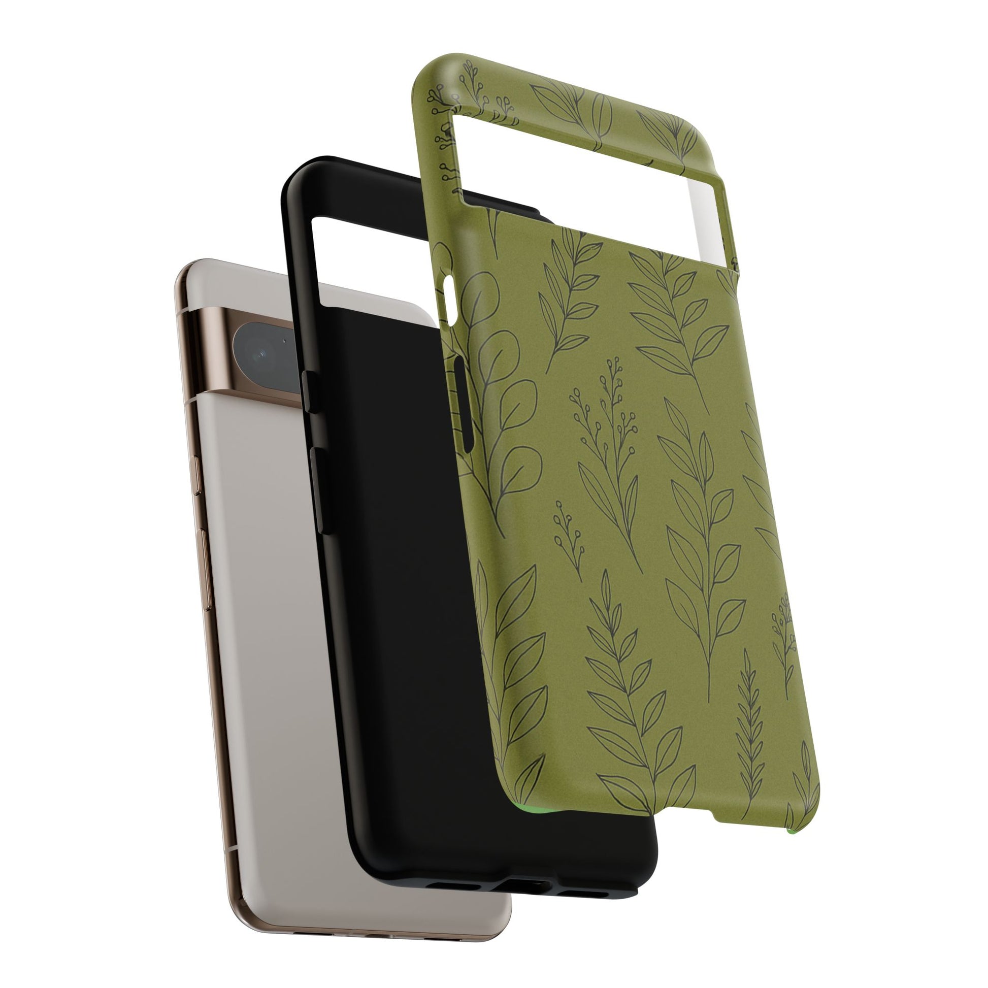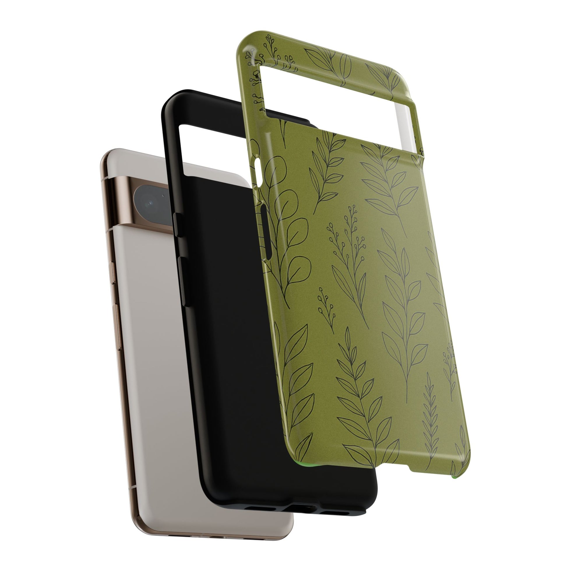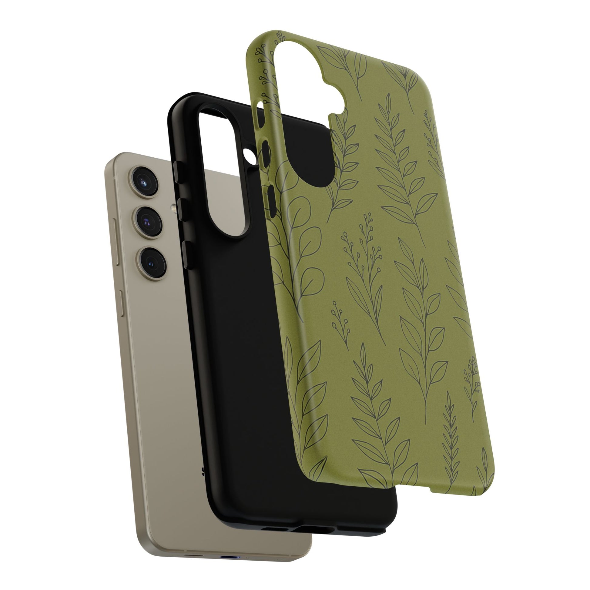 Stylish Phone Case, Botanical Design, Tough Phone Cover, Green Floral Case, Nature Inspired Gift, Eco-Friendly Accessory