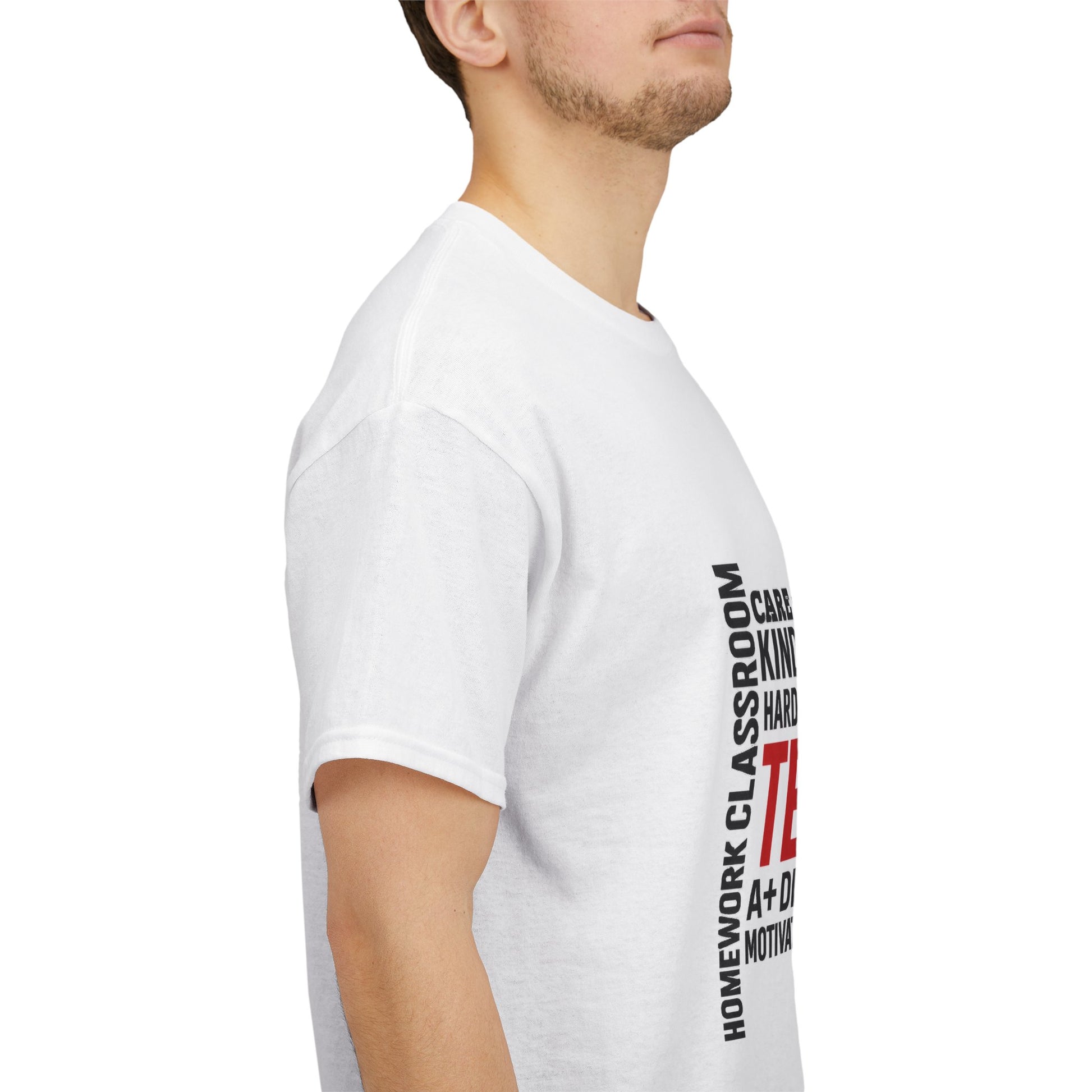 Introducing a premium Unisex Heavy Cotton Tee that symbolizes dedication and passion for teaching. Ideal for teachers and educators, this shirt is perfect for expressing appreciation during Teacher's Day, graduation ceremonies, or any day in the classroom. With its classic fit and comfortable crew neckline, you can wear it proudly as you inspire and motivate students, or during casual get-togethers with fellow educators. The natural vibe of the garment, alongside its smooth fabric, brings a sense of quality and character, making it a distinctive piece in any wardrobe. Celebrate the hard work of those in education or treat yourself to a comfortable tee that embodies your teaching ethos.