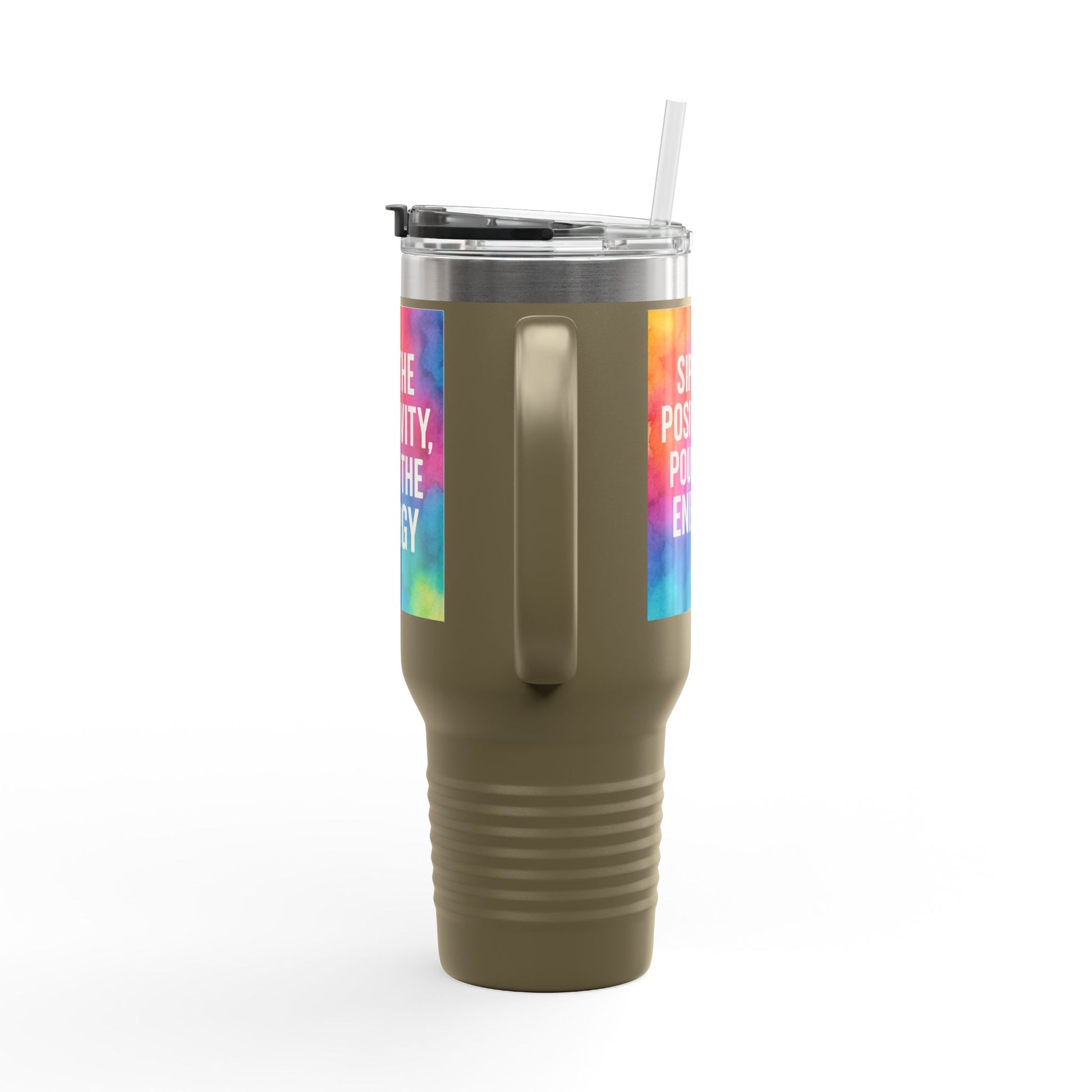 Vibrant Insulated Travel Mug | Sip the Positivity Mug, Hot Beverage Cup, Custom Drink Container, Colorful Tumblers, Travel Coffee Cup